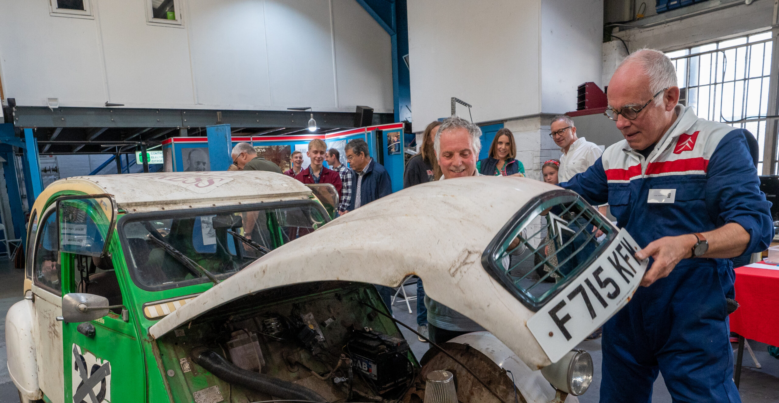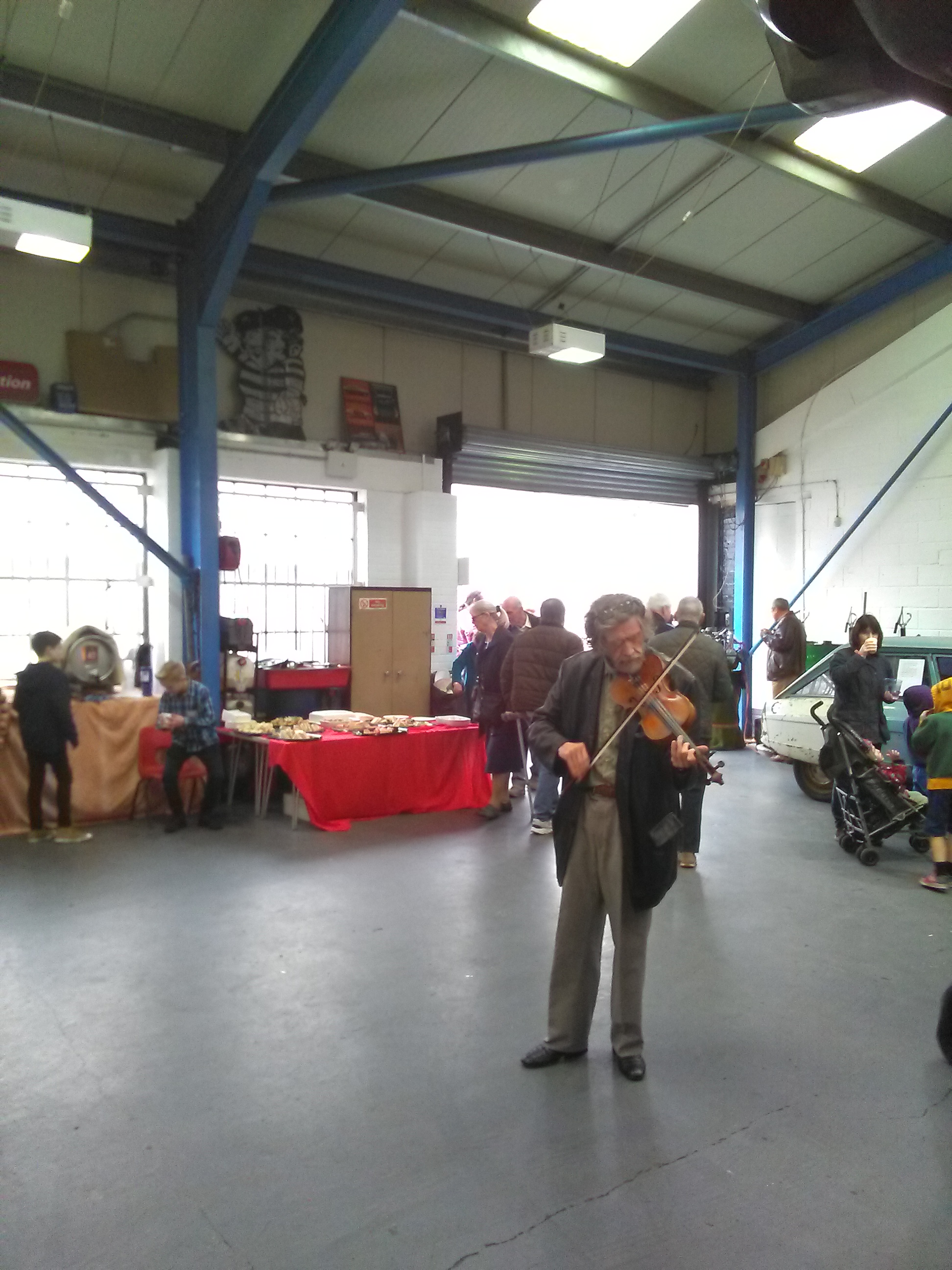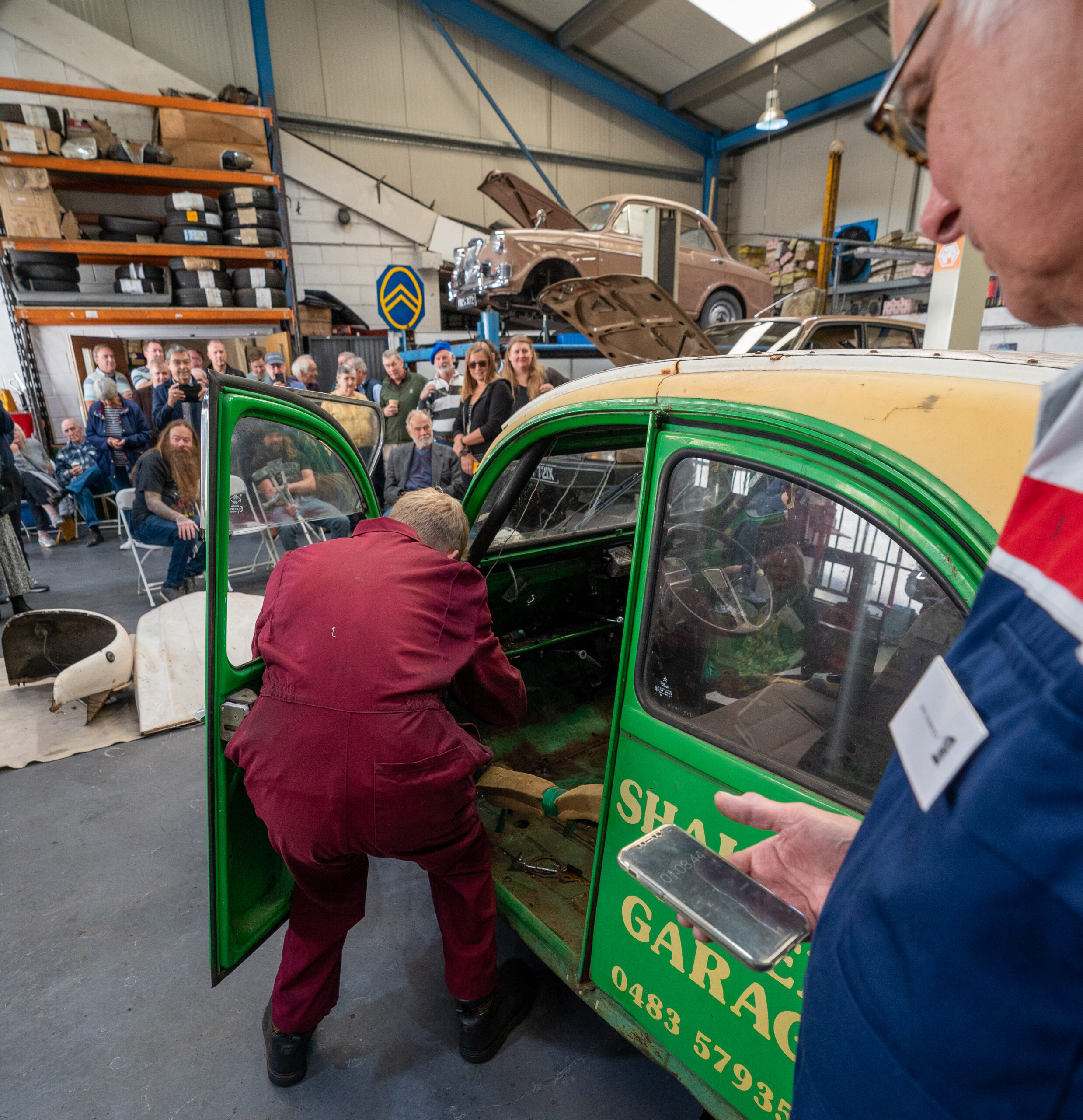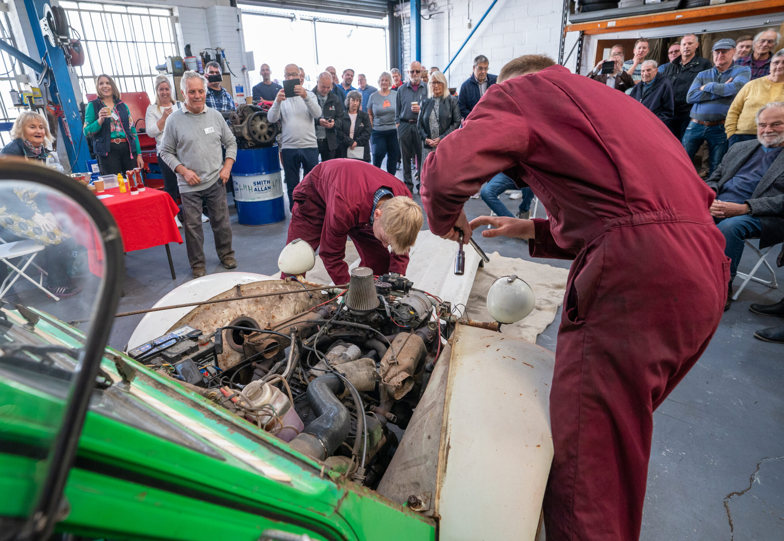 The open day had a programme of events running , spectators could see a windscreen being removed and refitted. An engine being run on a bench. There was a speech talking about vehicle restoration , a jazz band for visitors to relax and enjoy.