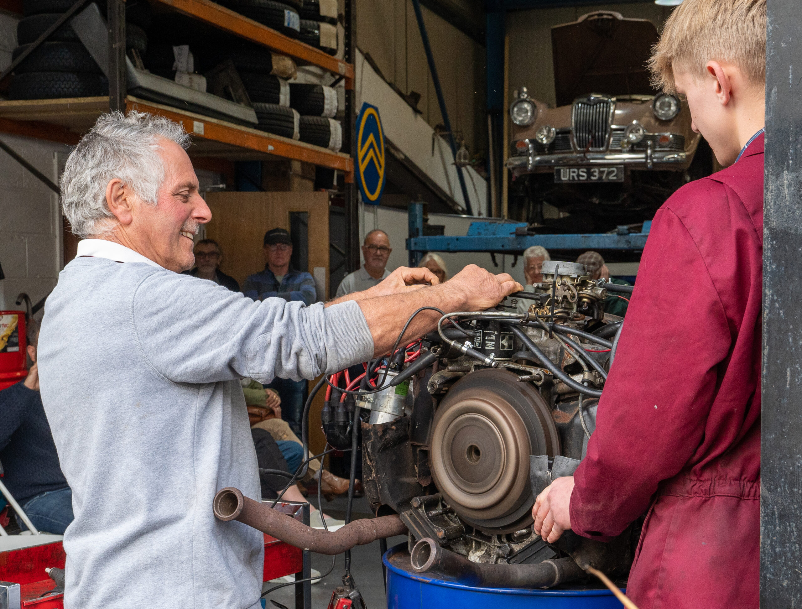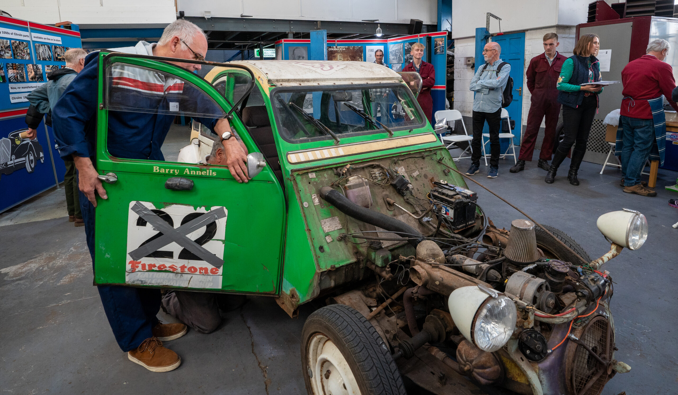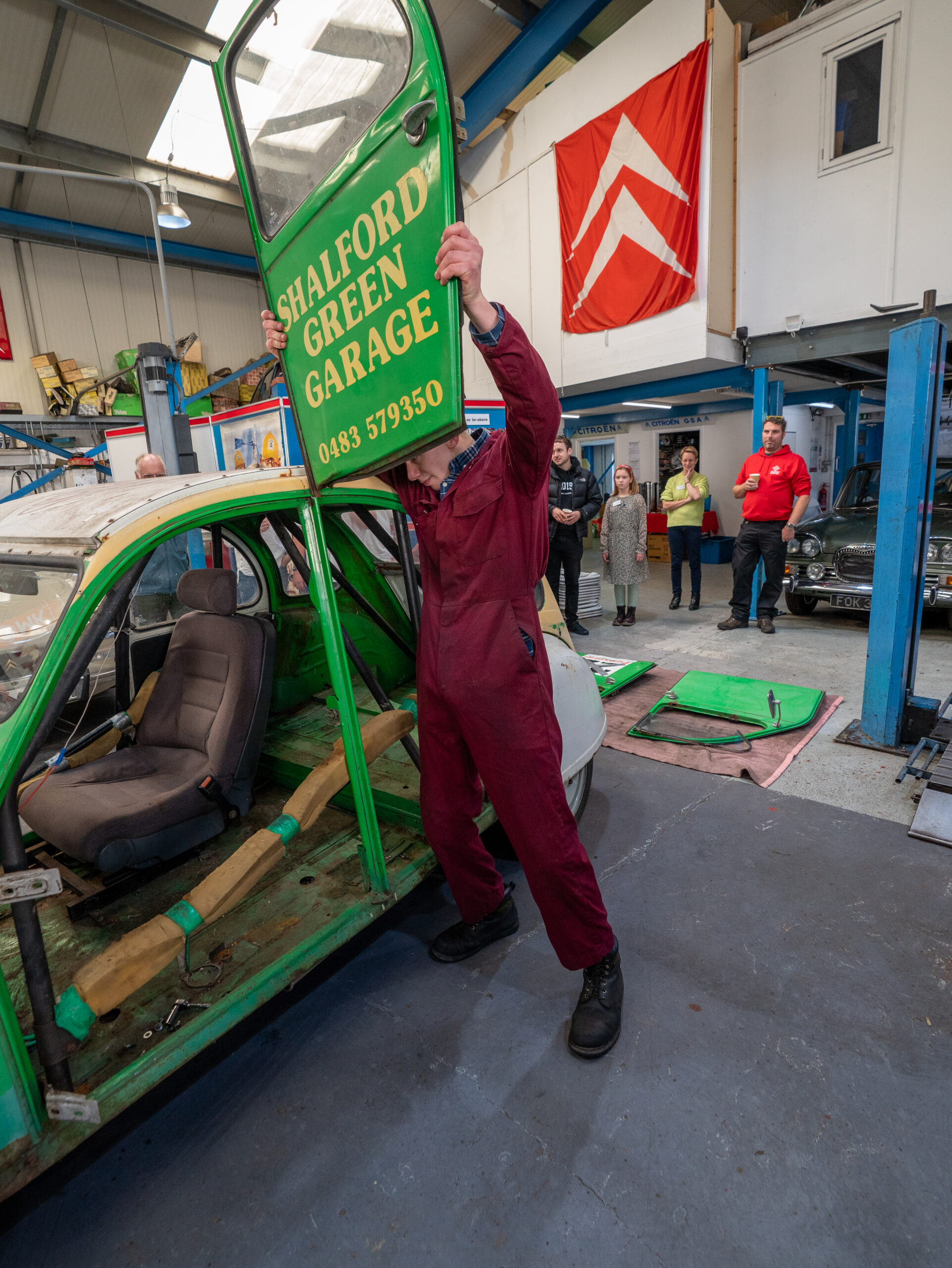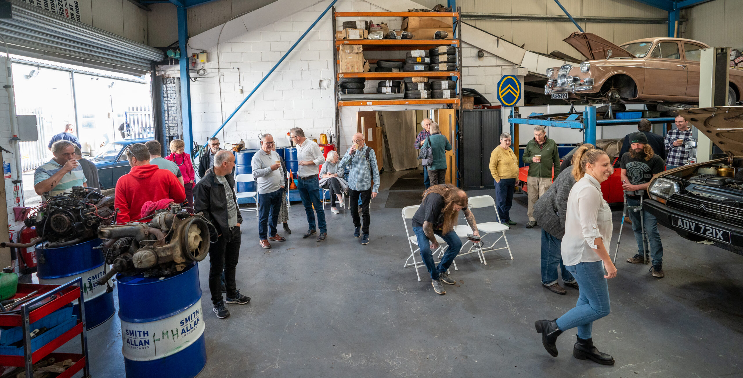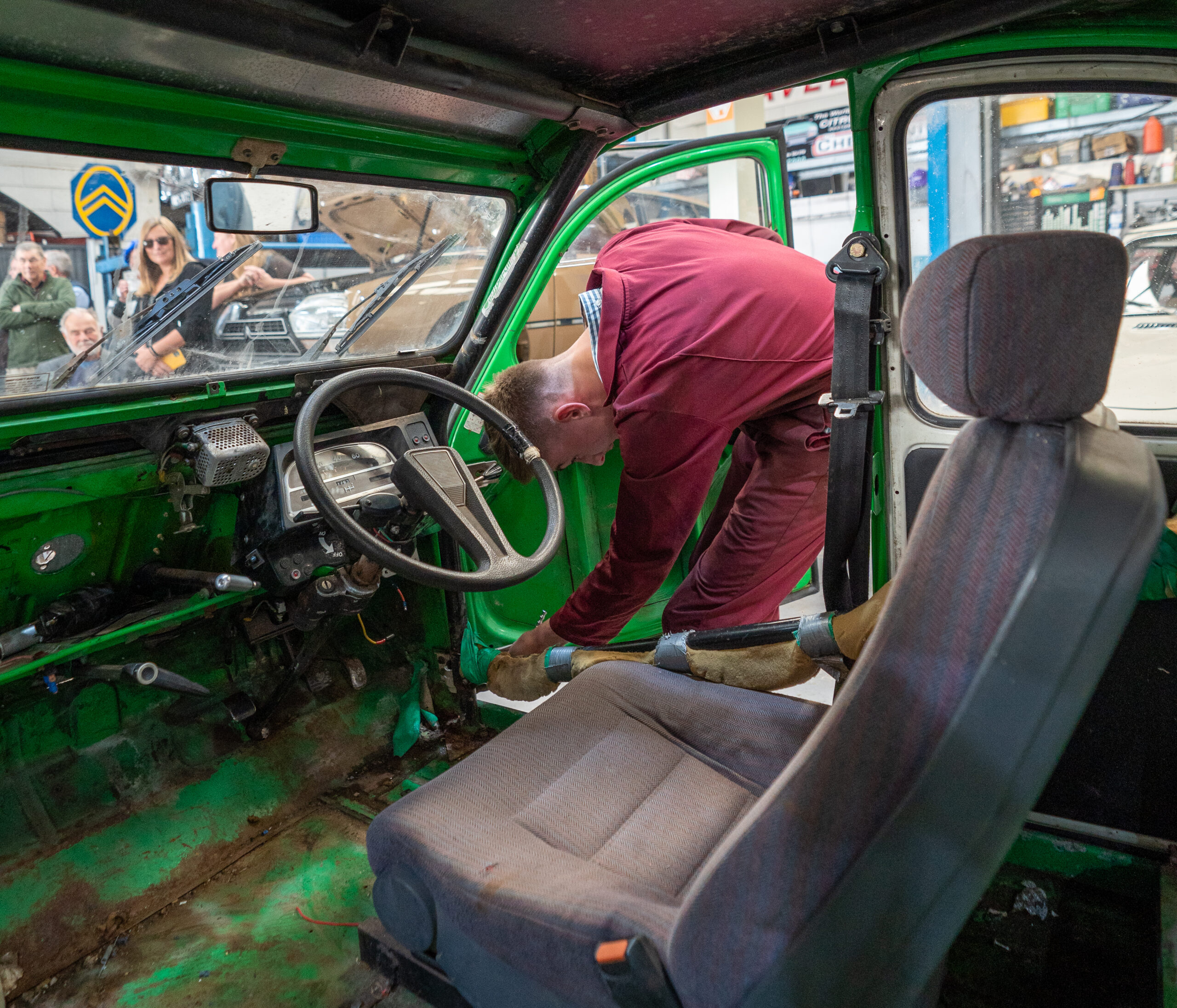 The open day had a programme of events running , spectators could see a windscreen being removed and refitted. An engine being run on a bench. There was a speech talking about vehicle restoration , a jazz band for visitors to relax and enjoy.