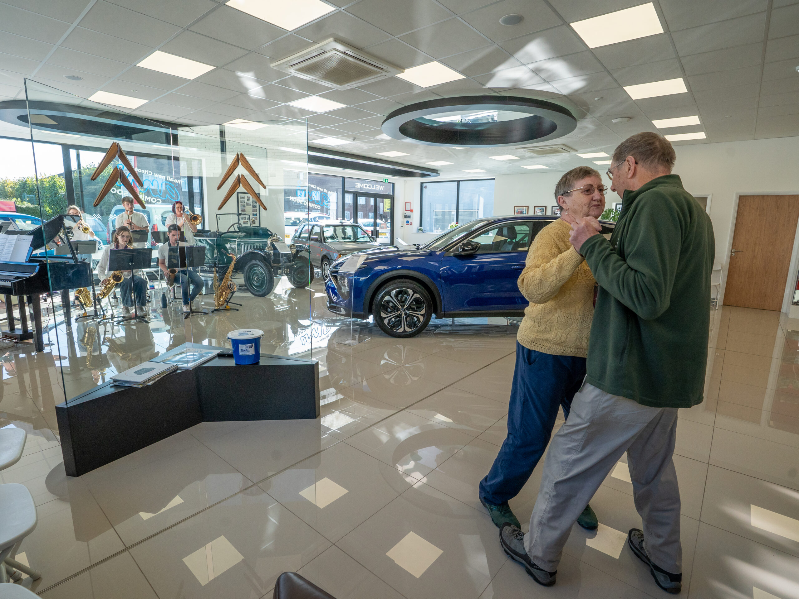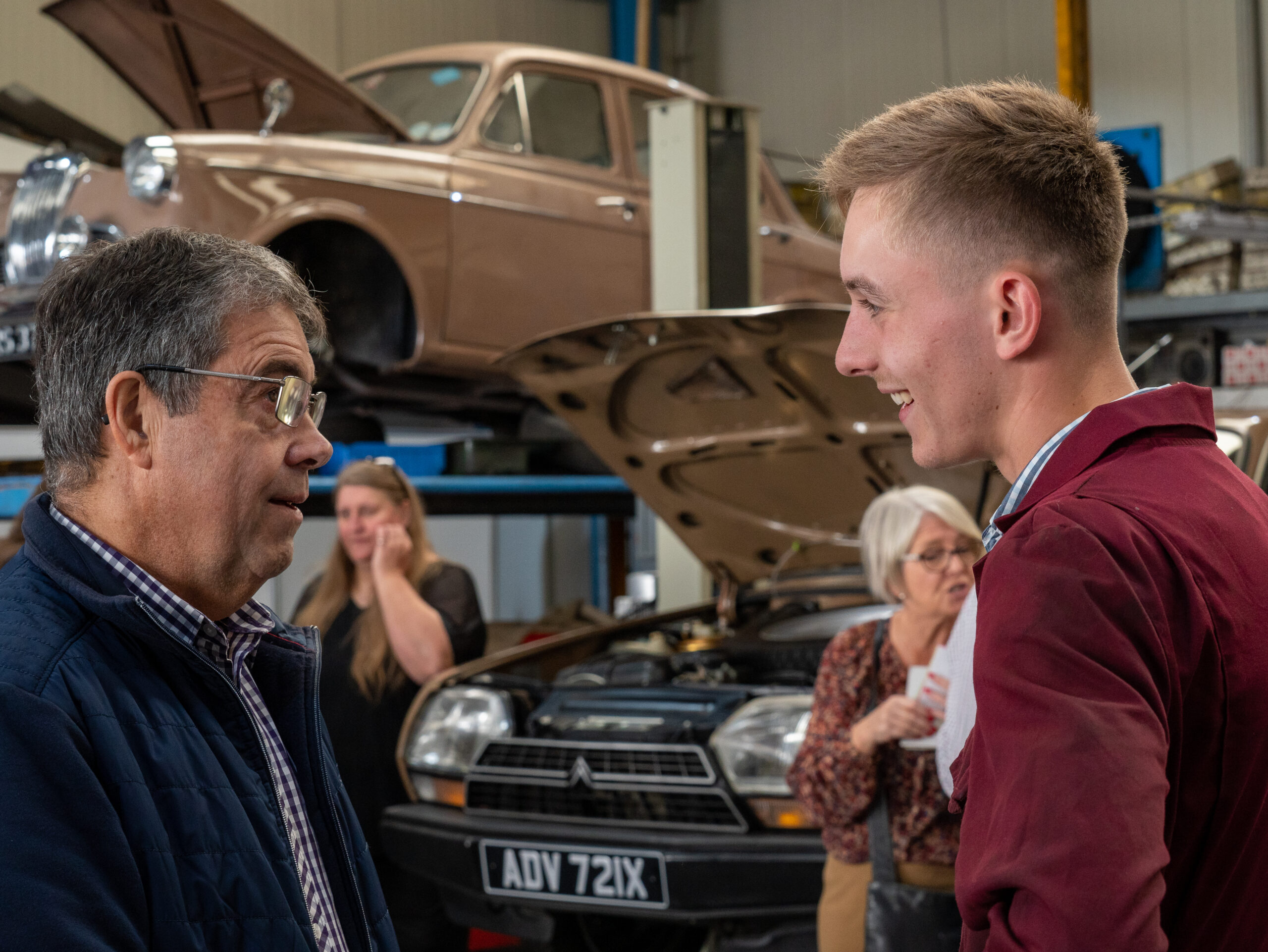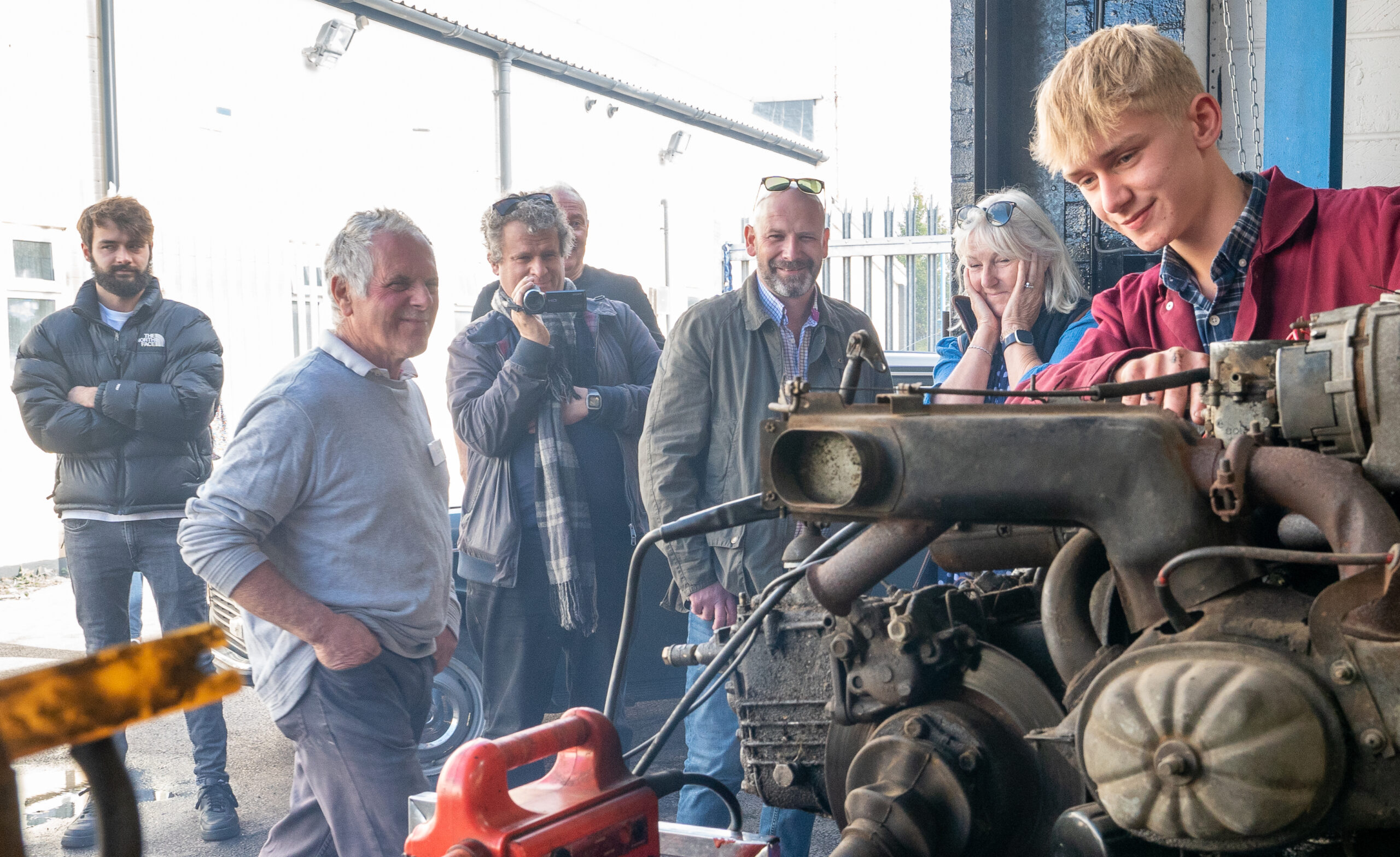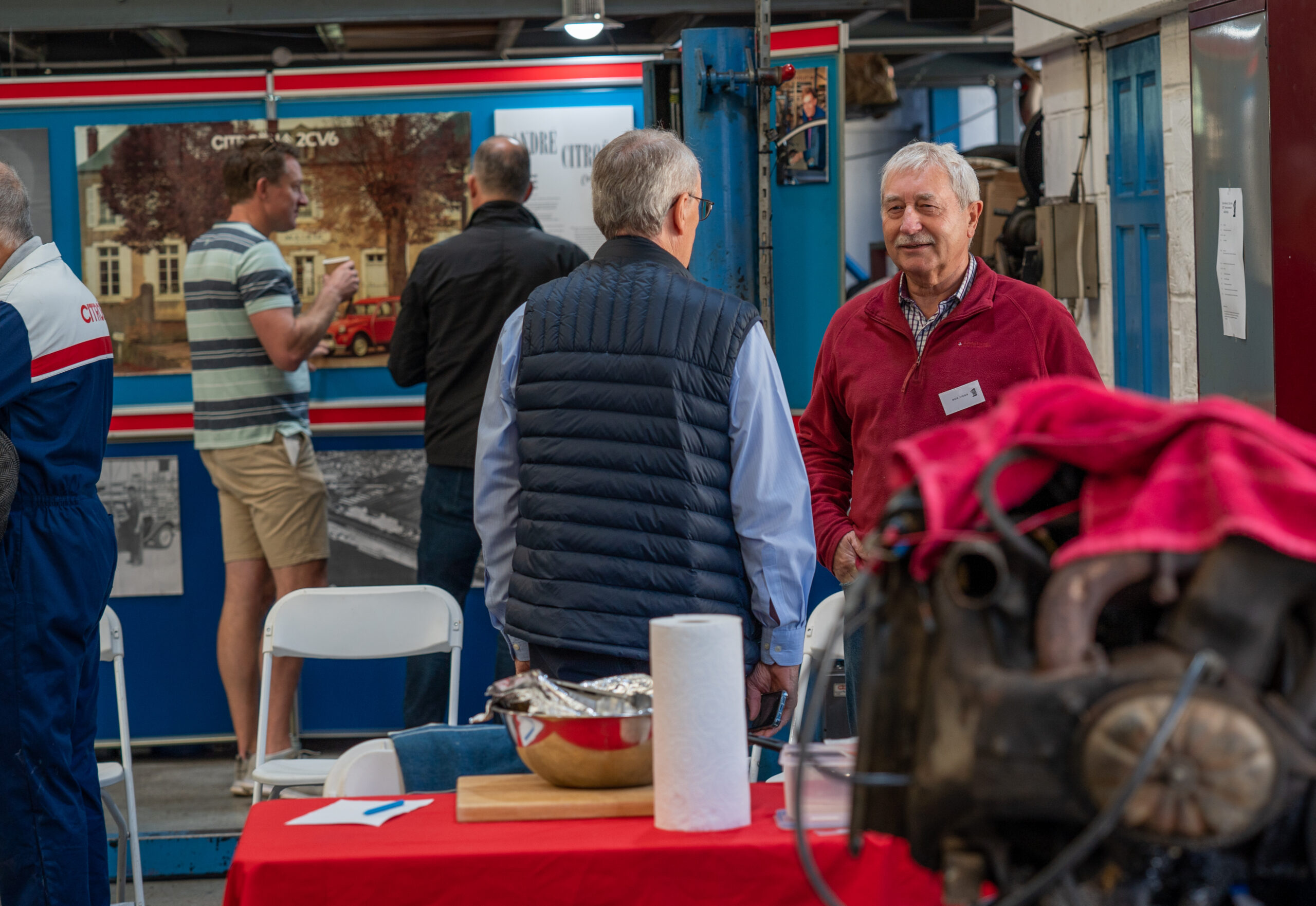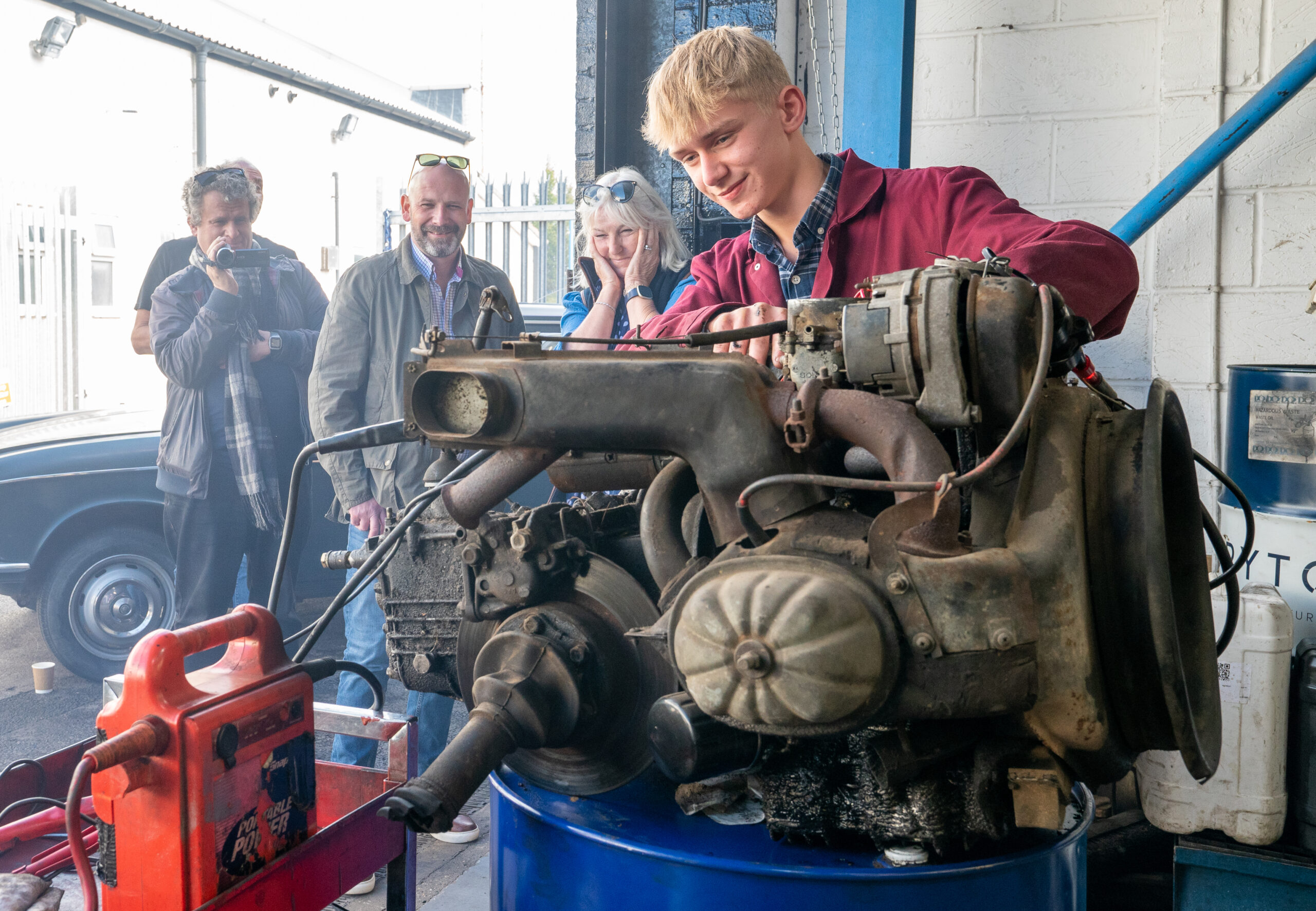 The open day had a programme of events running , spectators could see a windscreen being removed and refitted. An engine being run on a bench. There was a speech talking about vehicle restoration , a jazz band for visitors to relax and enjoy.