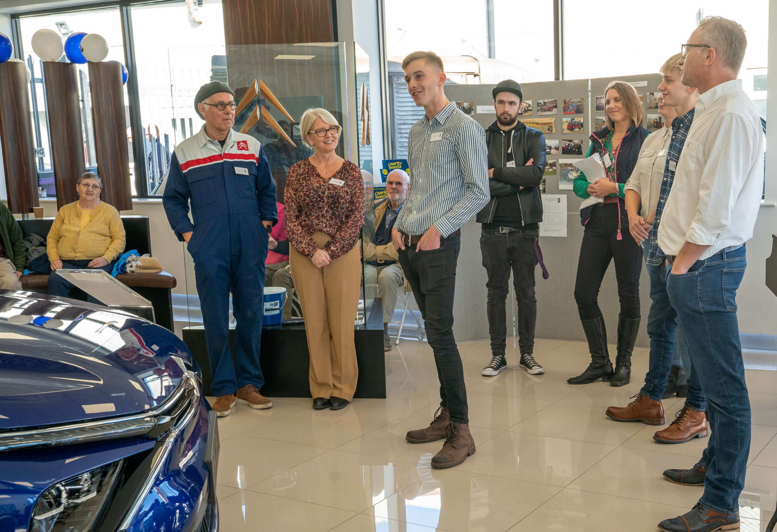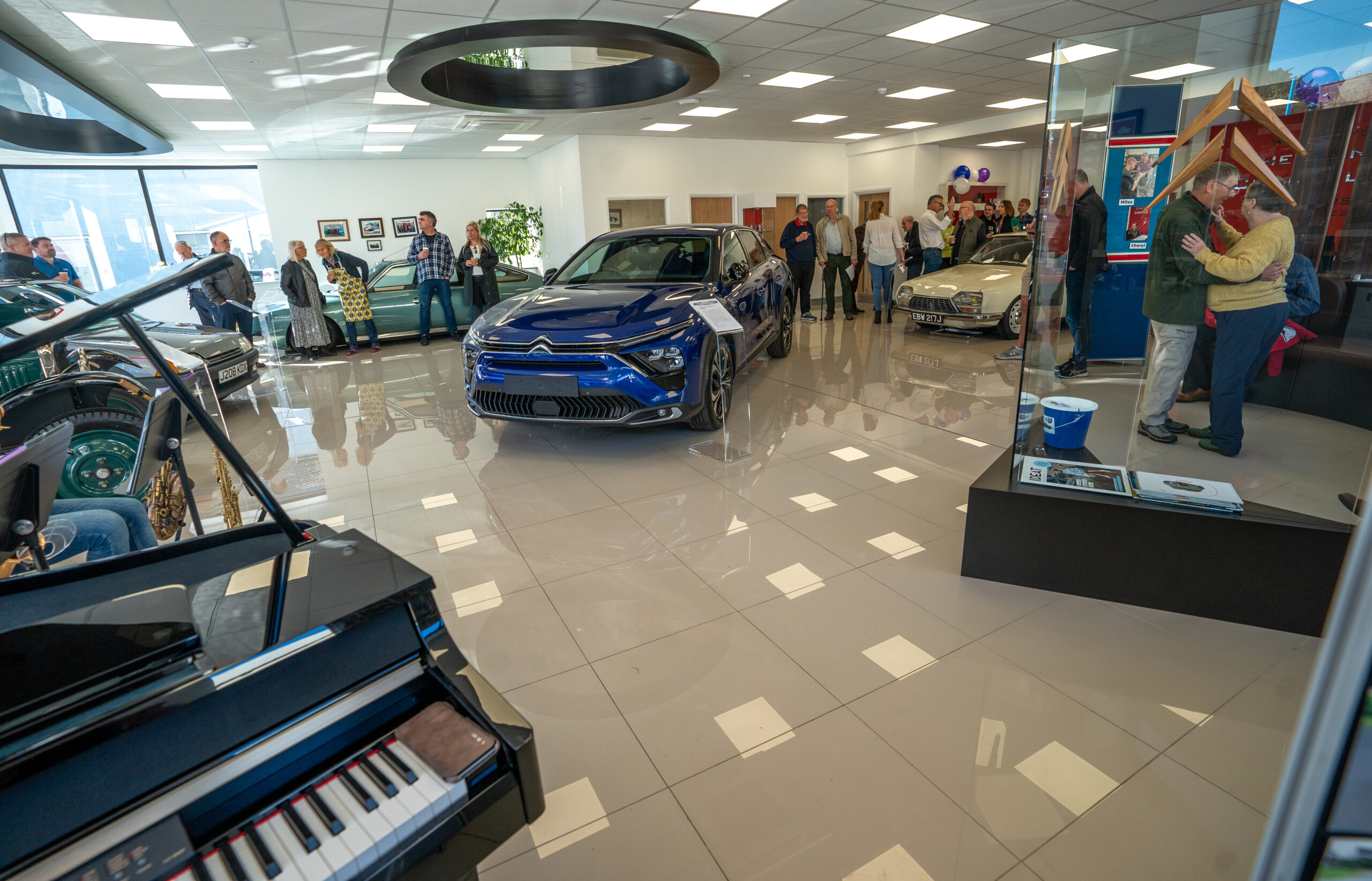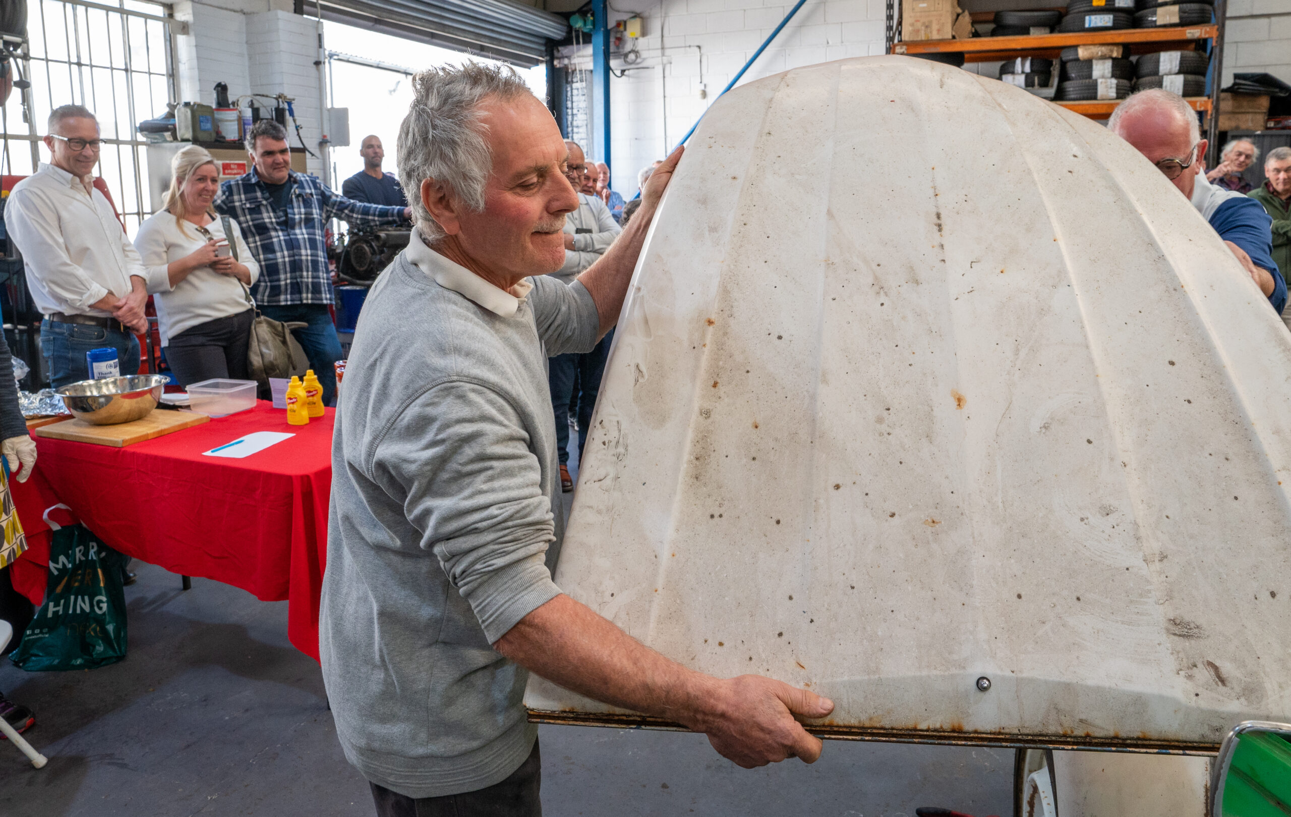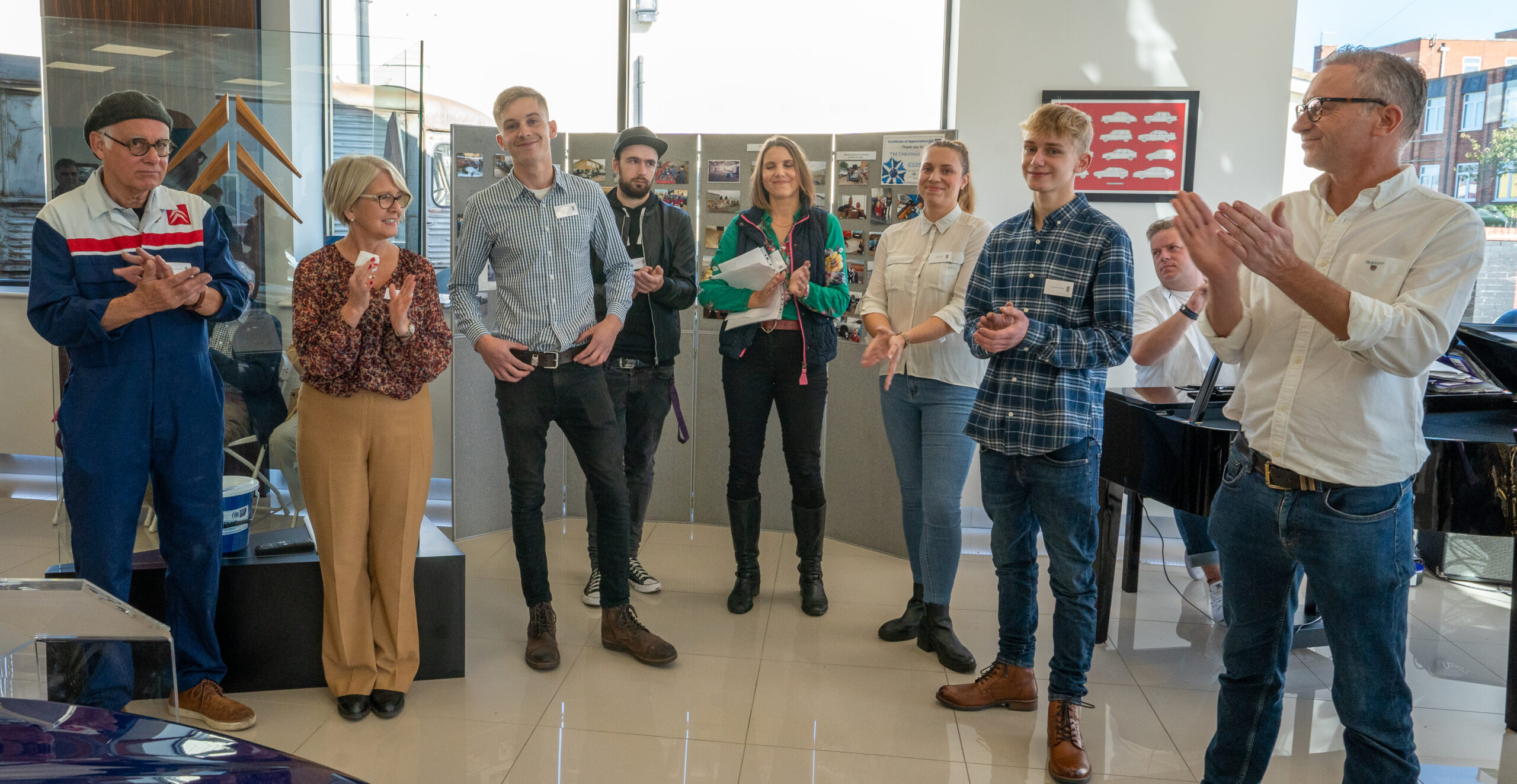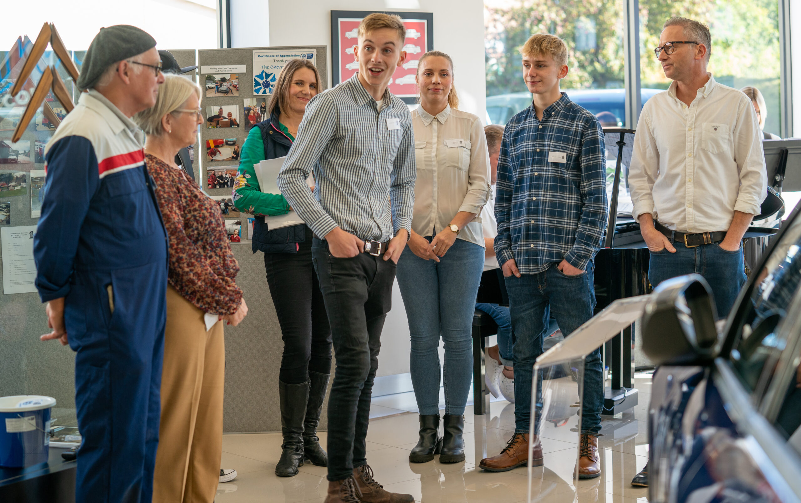 The open day had a programme of events running , spectators could see a windscreen being removed and refitted. An engine being run on a bench. There was a speech talking about vehicle restoration , a jazz band for visitors to relax and enjoy.