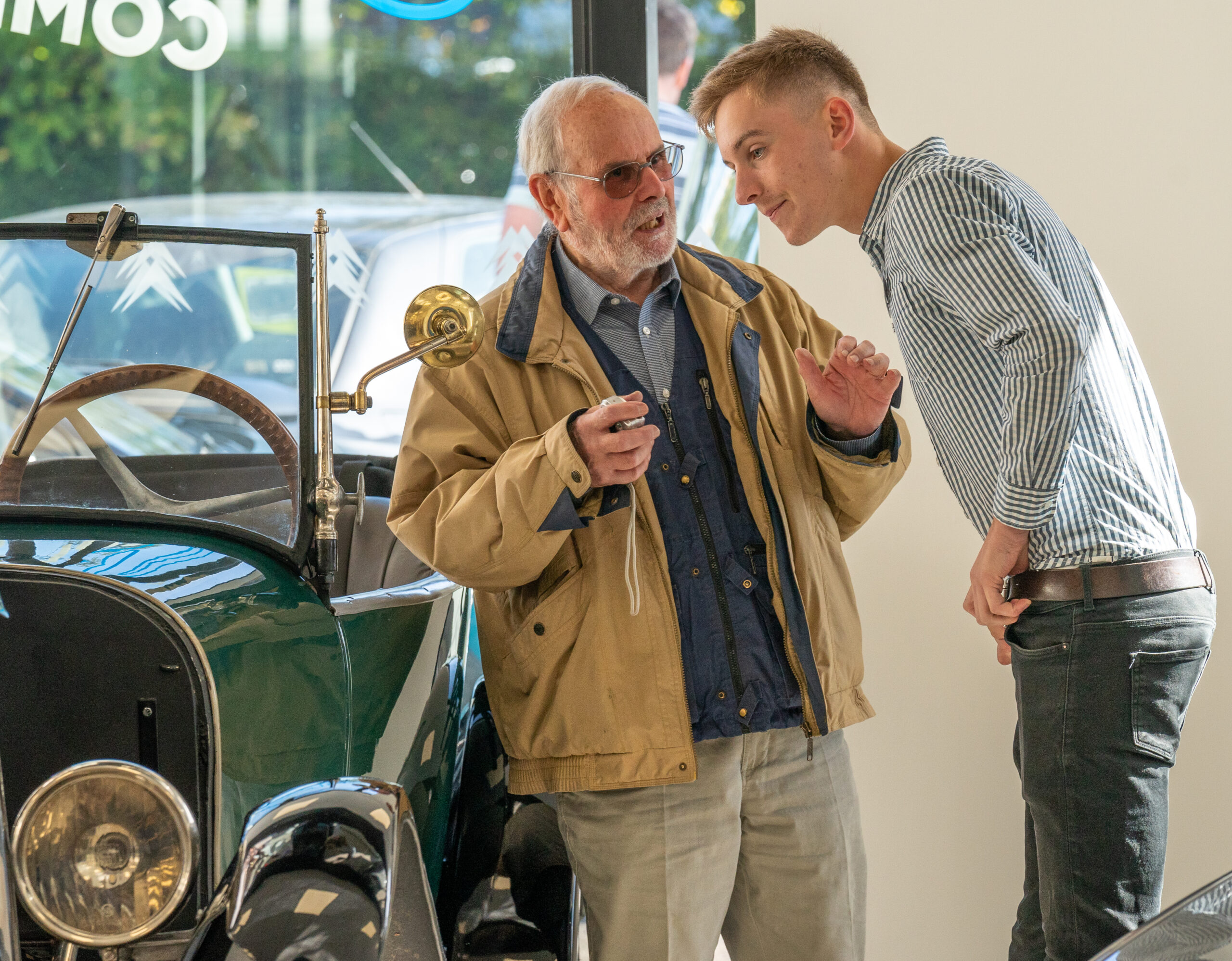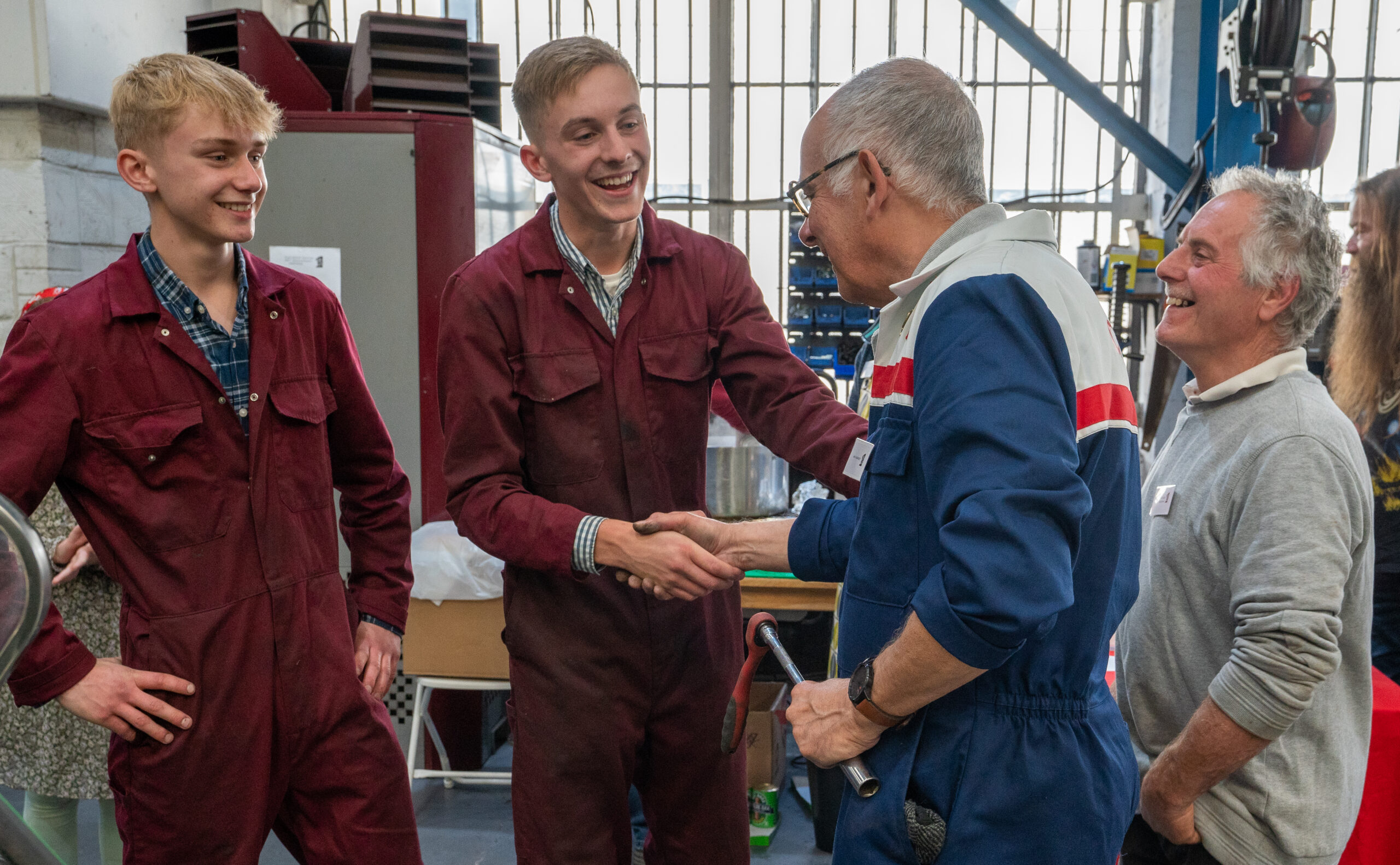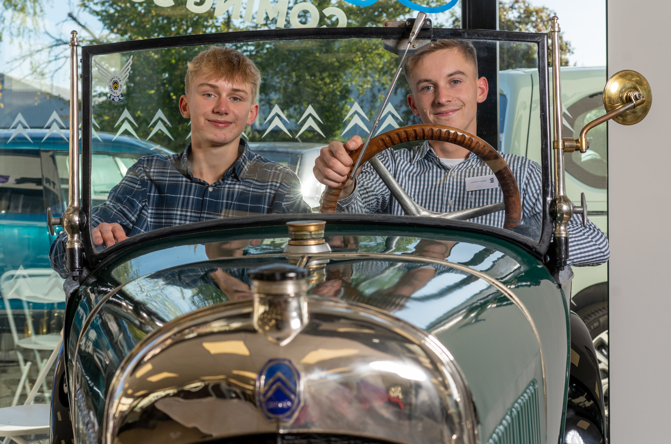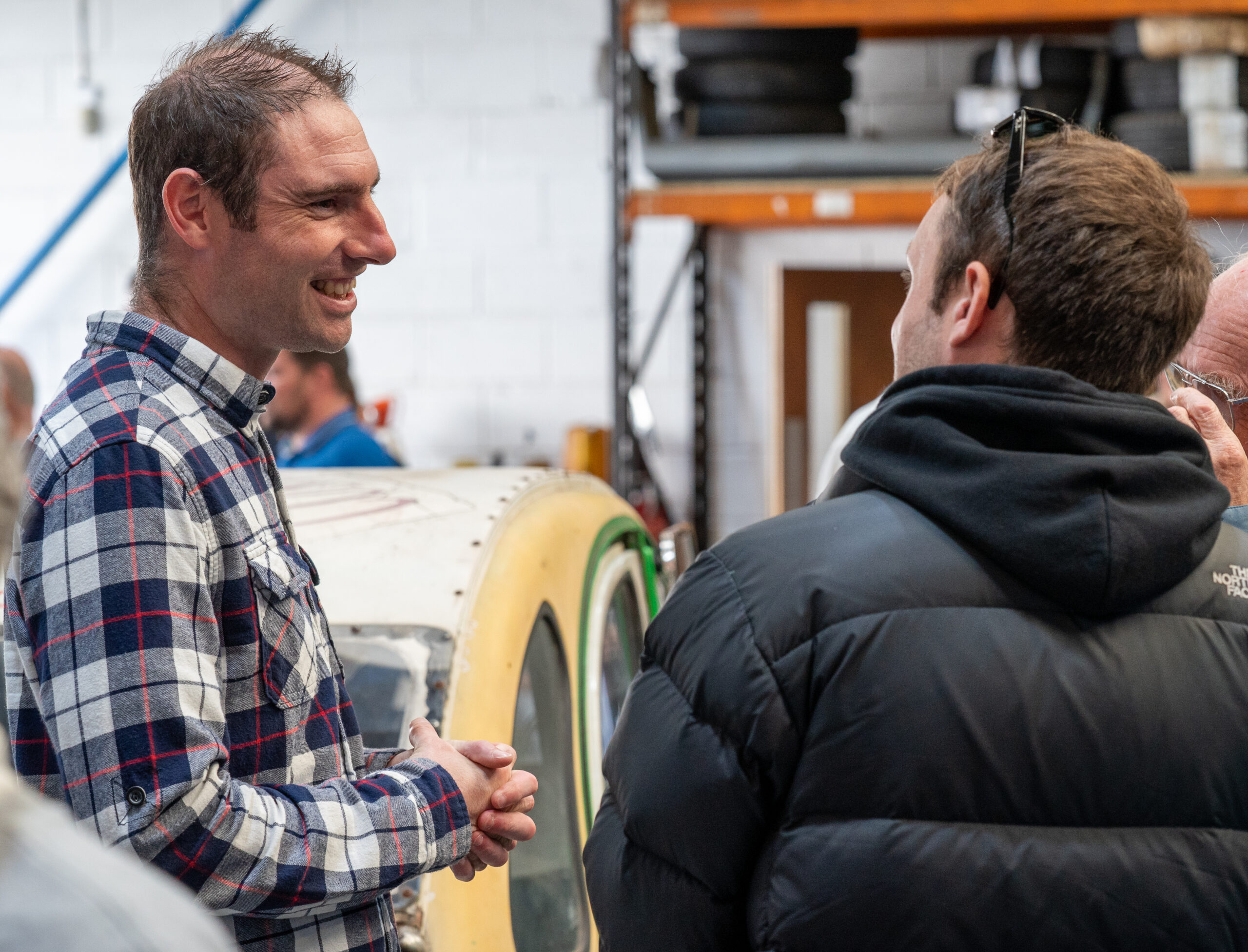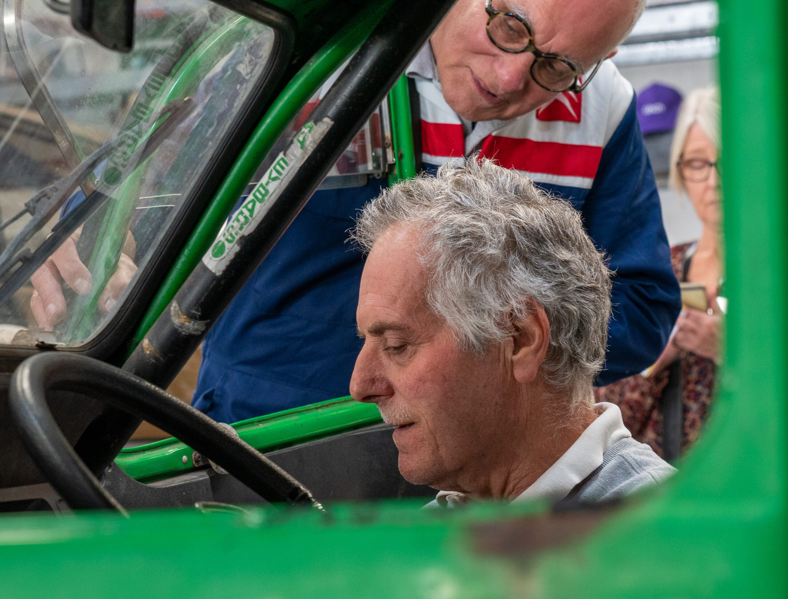 The open day had a programme of events running , spectators could see a windscreen being removed and refitted. An engine being run on a bench. There was a speech talking about vehicle restoration , a jazz band for visitors to relax and enjoy.