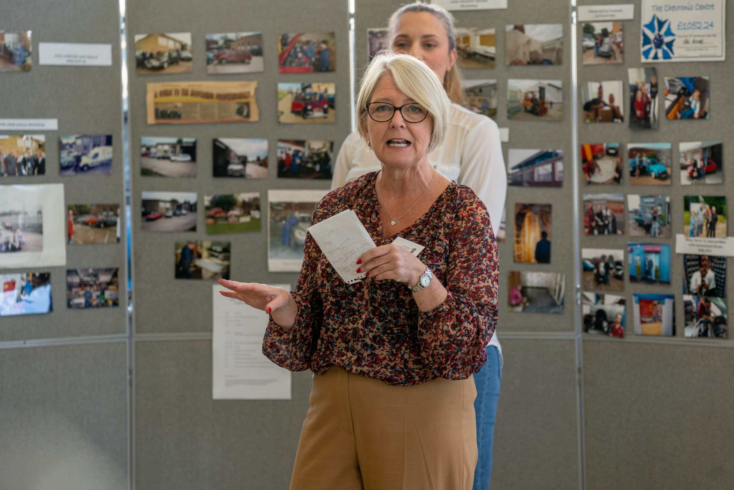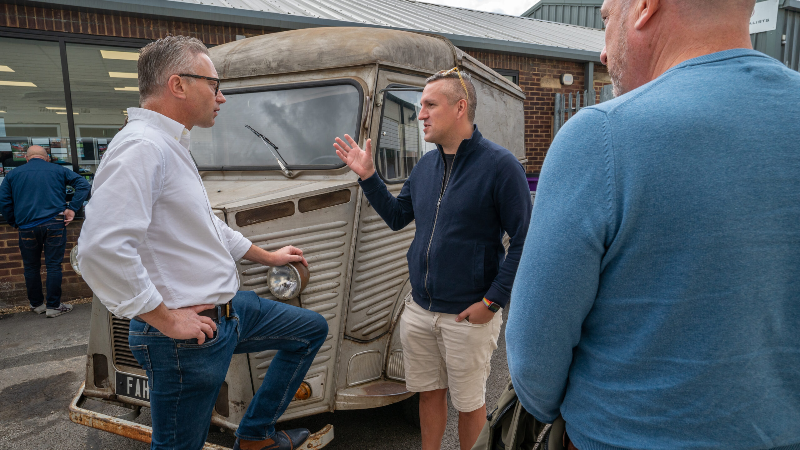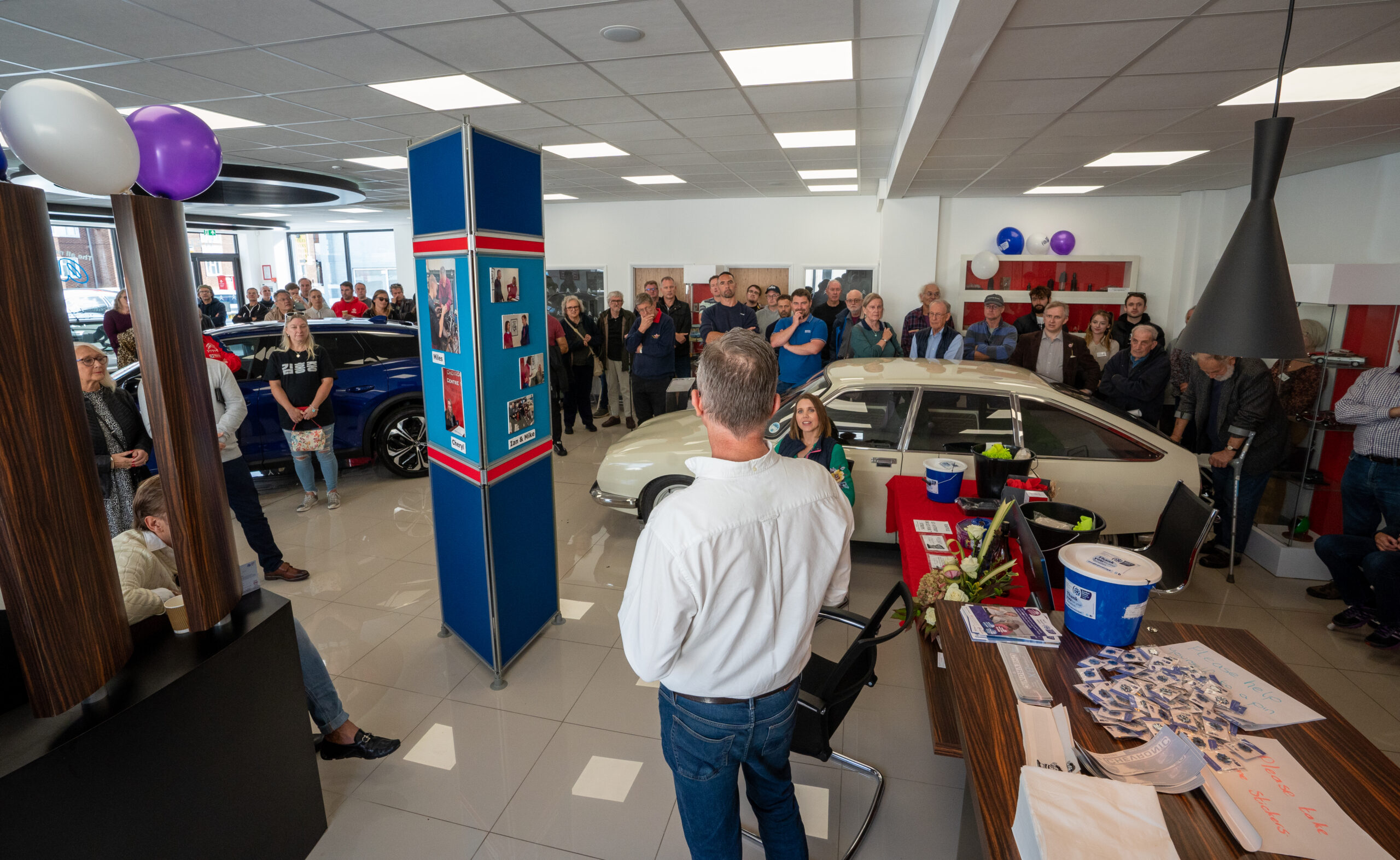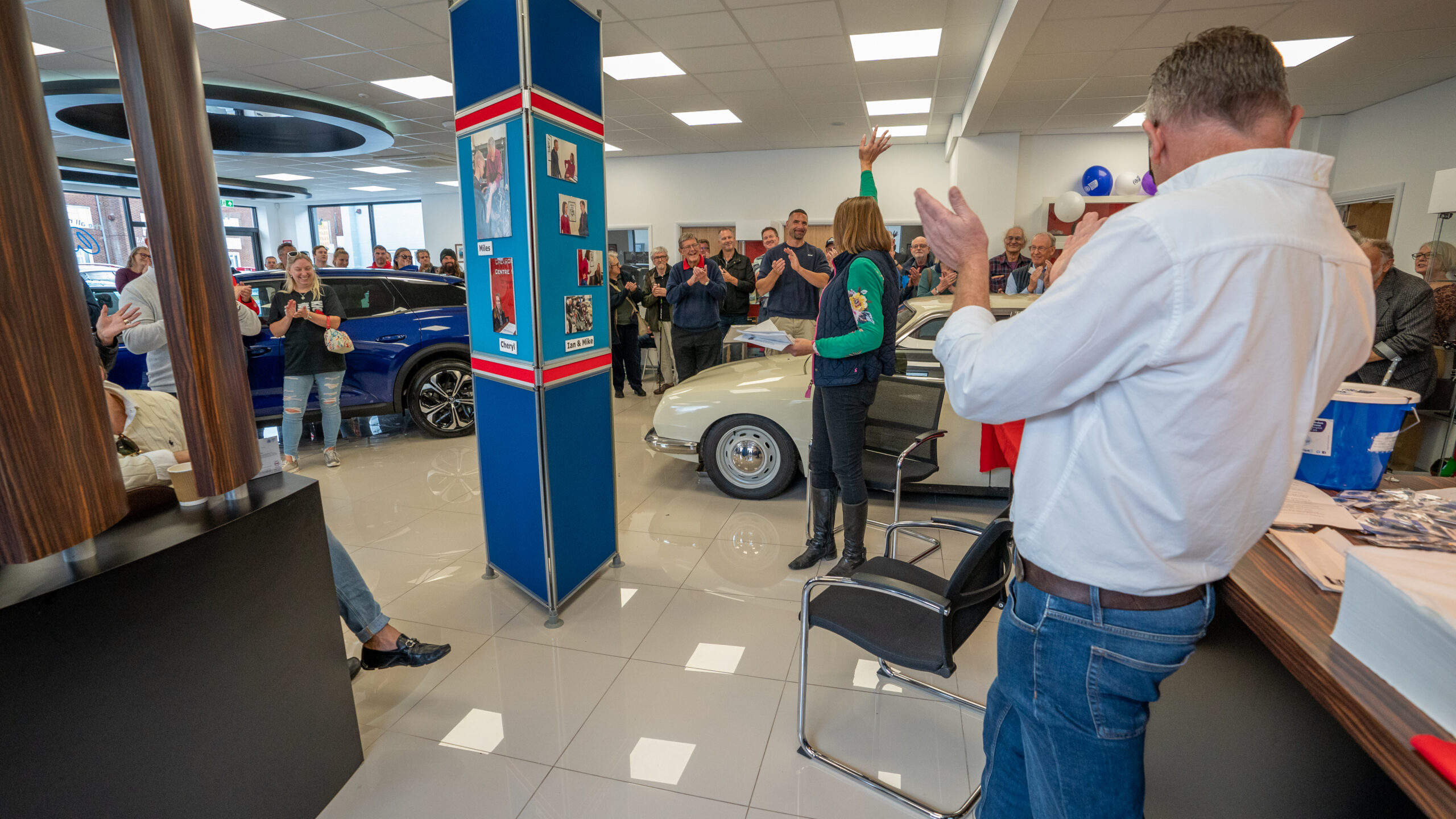 The open day had a programme of events running , spectators could see a windscreen being removed and refitted. An engine being run on a bench. There was a speech talking about vehicle restoration , a jazz band for visitors to relax and enjoy.