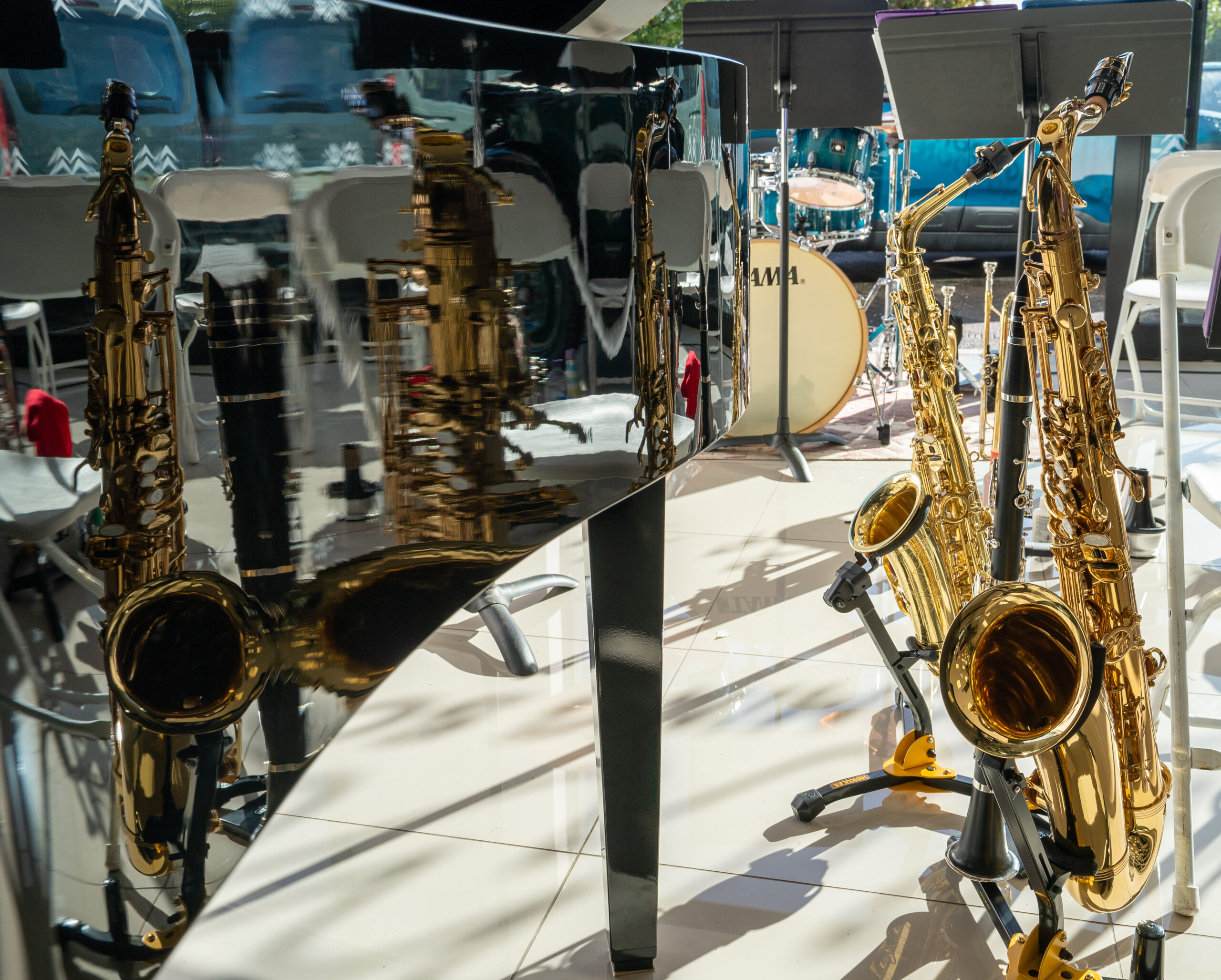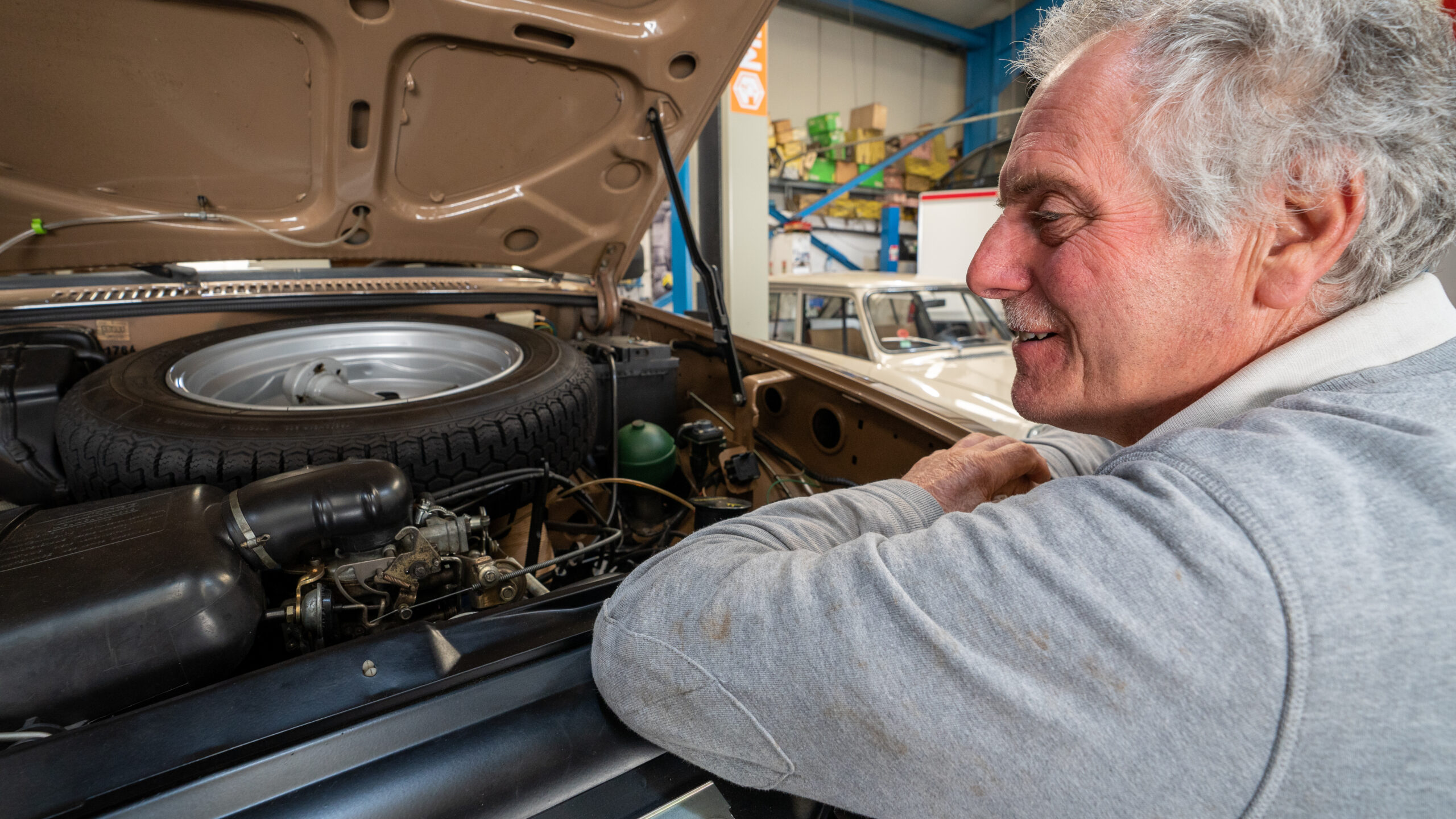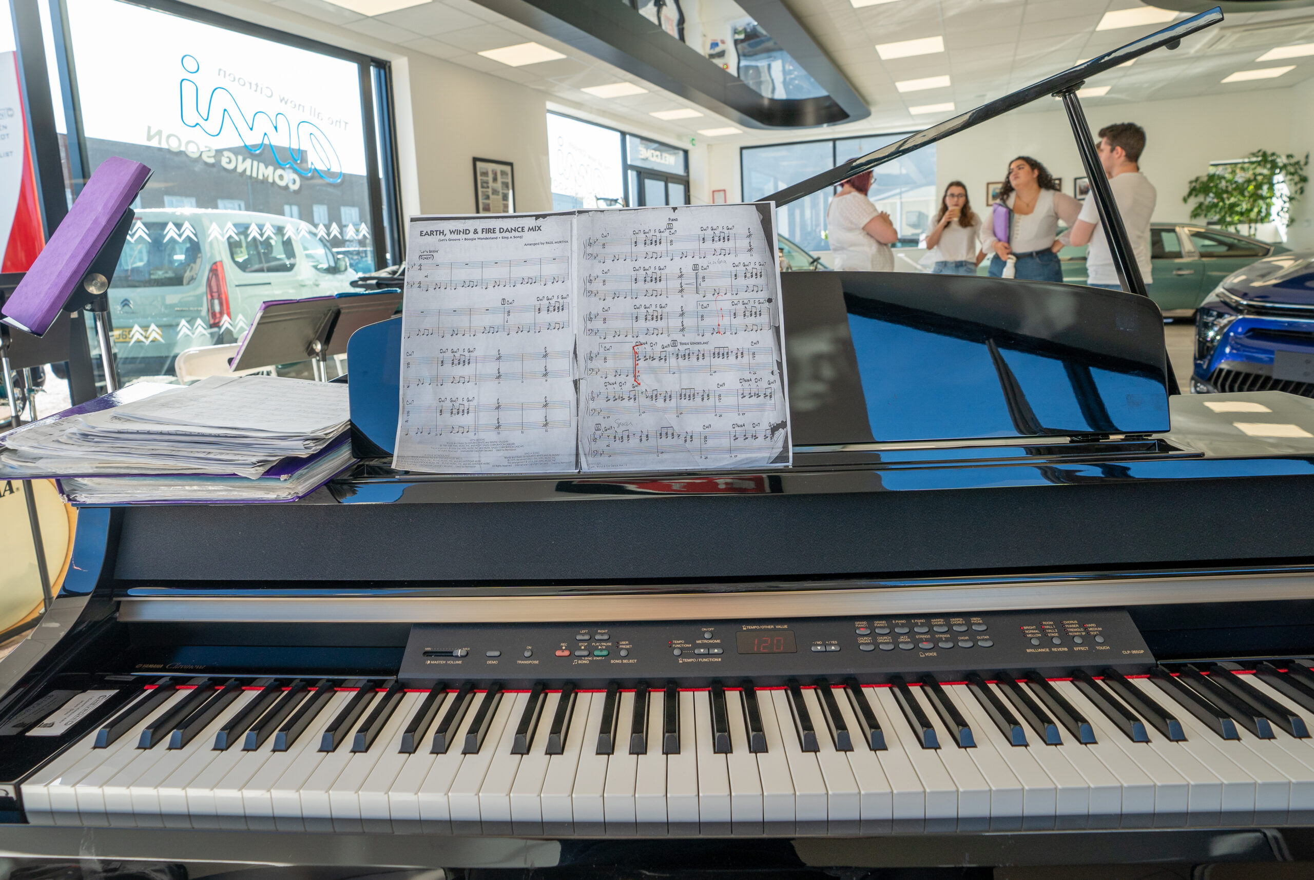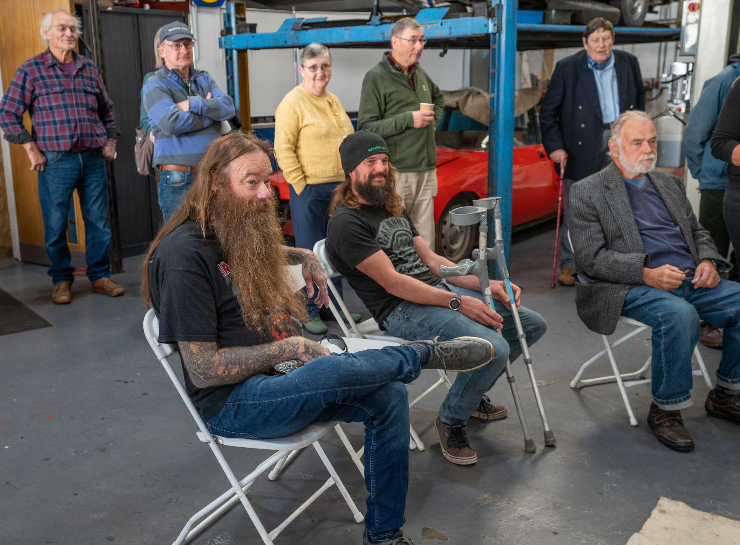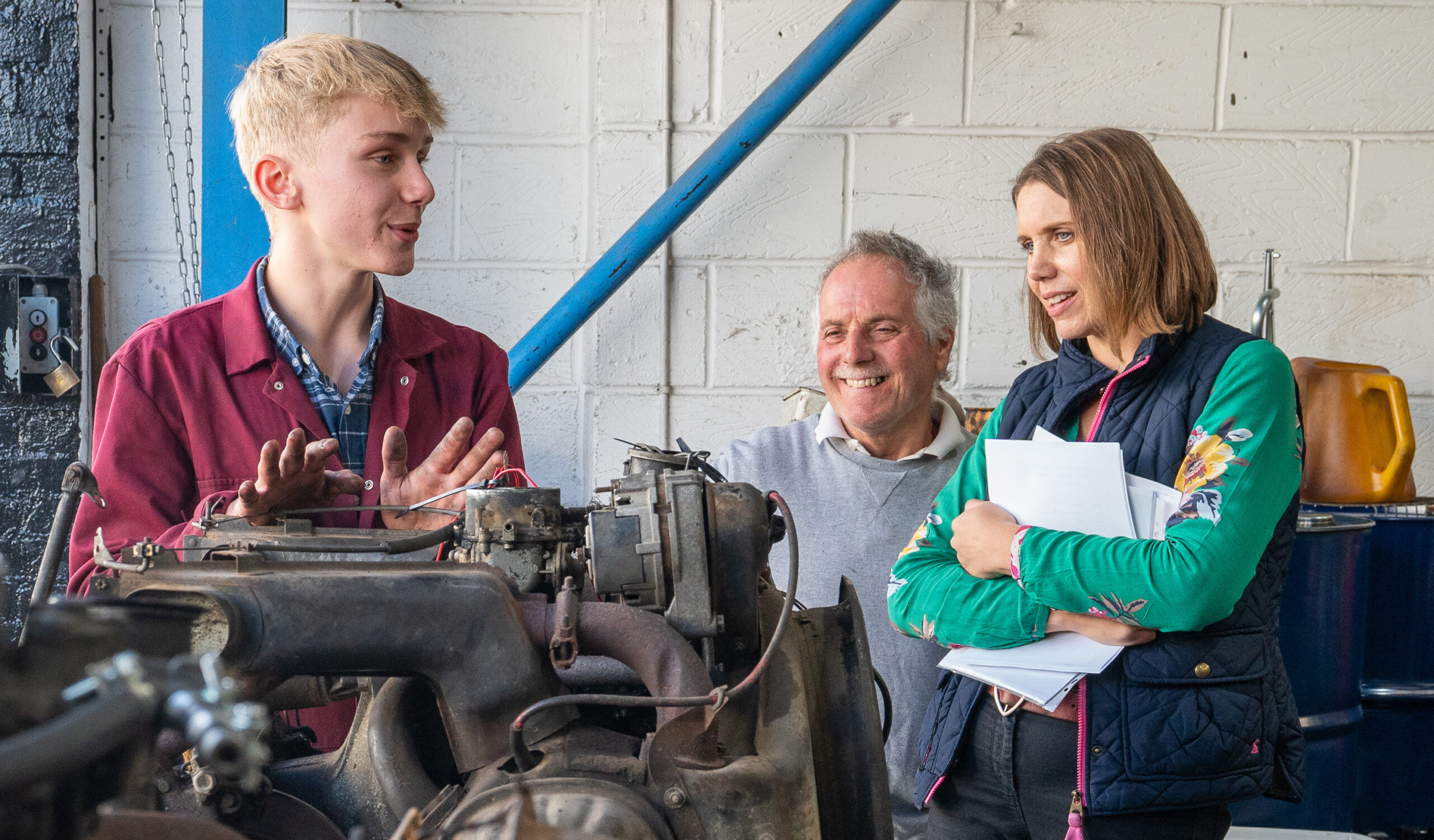 The open day had a programme of events running , spectators could see a windscreen being removed and refitted. An engine being run on a bench. There was a speech talking about vehicle restoration , a jazz band for visitors to relax and enjoy.